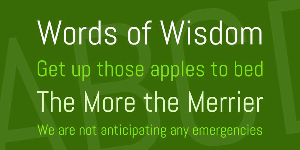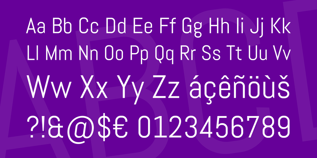Abel is a modern interpretation of the condensed flat-sided sans serif. Originally used for newspaper headlines and posters, this style can also be used for text on the web. Its angled terminals and spiked stems give it enough style to be unique at display sizes, while its mono-weight still works well at smaller text sizes. An updated pro version with many more glyphs and a companion Bold weight is available at MyFonts.