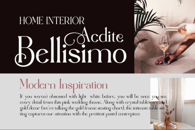 Angrela Display Font is modern and elegant serif font designed by Gatype with lovely ligature. Great for use for fancy themed projects, branding projects, Magazine, Social Media, Branding, Logos, website headers or simply as a stylish text overlay onto any background image. and Many more need a Luxury touch.