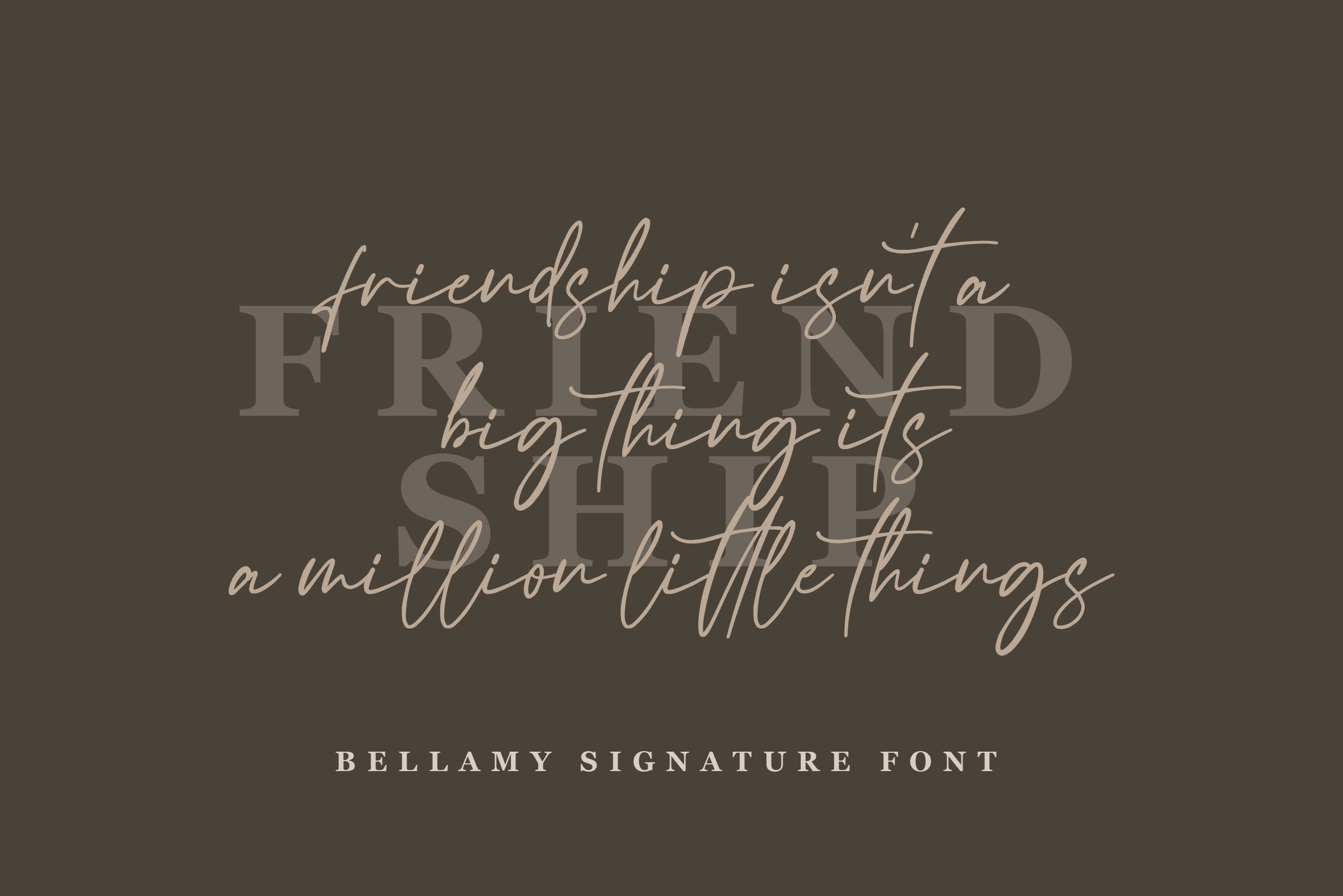 Bellamy Signature Font is a thin and authentic script typeface. The font is suitable for any branding project like logo, t-shirt printing, esports, and many more. It will look outstanding in a wide range of contexts.