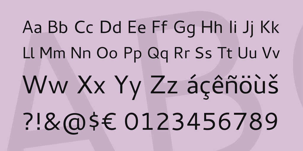 The Regular font fully supports the following writing systems: Basic Latin, Western European, Catalan, Baltic, Turkish, Central European, Dutch and Afrikaans. To date, Pan African Latin has only 33% glyph coverage.
