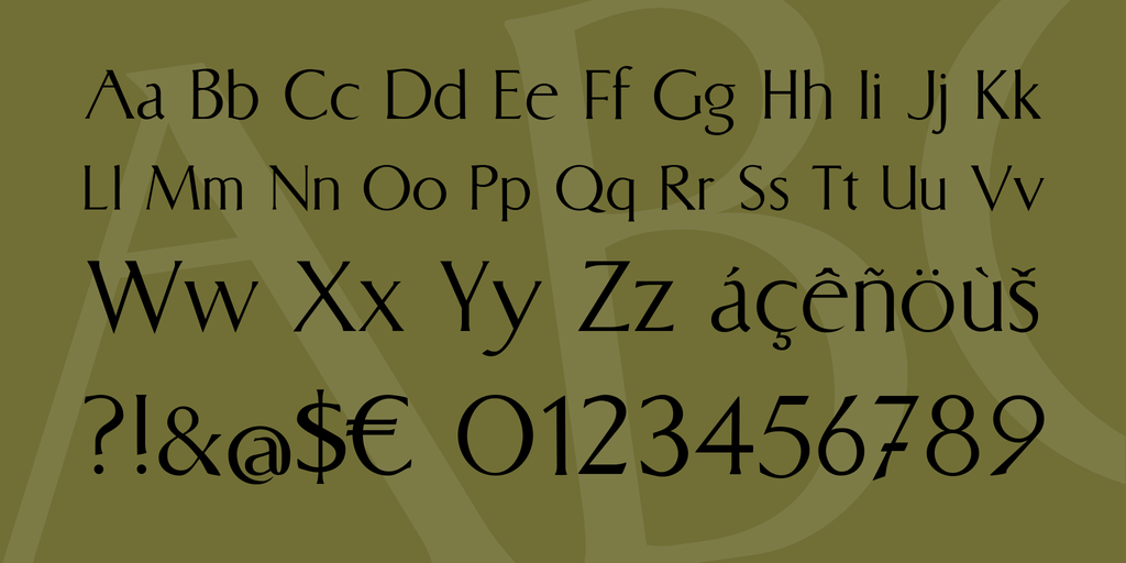 There are over 1800 characters available in total. The font now includes all Latin Unicode blocks, as well as Cyrillic, Greek (incl. Polytones Greek) and ligatures according to UNZ1 recommendation. Also IPA phonetics characters are available on the intended Unicode places. Further, currency symbols are included beyond the usual scope, like the Turkish lira and Russian ruble symbol.