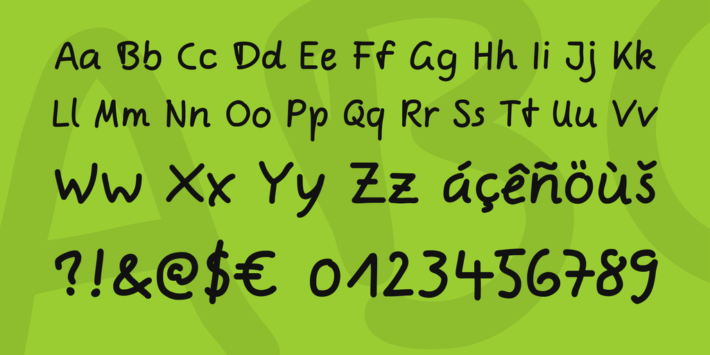 Version 2.0 of Comic Jens has been released on 13 May 2010. It corrects some issues with a couple of letter forms and is now in TrueType-based OpenType format and features extended language support (including Cyrillc and Greek, more than WGL4), more OpenType features and improved screen display. Please see the specimen PDF included in the download for details.