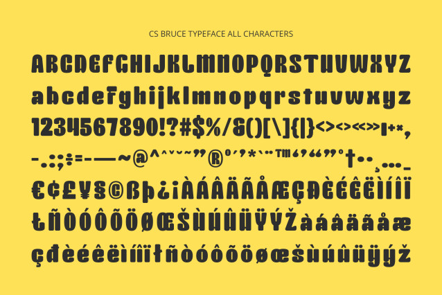 Whether used in editorial design, advertising, packaging, or corporate identity, CS Bruce delivers a dynamic presence that feels both fresh and timeless. Its strong silhouette and contemporary style make it a versatile choice for creative professionals looking to create visual hierarchy and emphasis in their compositions.