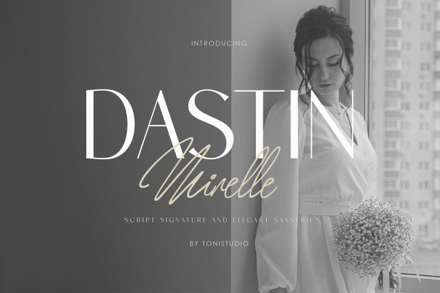 Dastin Mirelle Font Duo is an elegant sans serif typeface combined with handwritten script that has been modernized with its unique curves and flows. The sans serif features clean lines and refined proportions, ideal for premium branding, editorial layouts, and minimalist packaging. The script font flows effortlessly with soft, handwritten curves and delicate ligatures that exude femininity and sophistication. Use them together or separately to create beautifully cohesive designs that radiate grace, confidence, and timeless elegance. Perfect for Logos & branding,Wedding invitations,Fashion editorials,Beauty product packaging,Instagram content,quotes and much more.