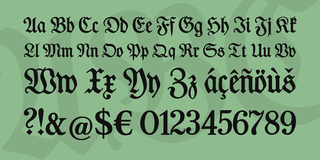 This font is based on a draft from the book “Die Schriften des Malers” (The lettering of the painter) by Walter Schenk, published by Dr. Pfannenberg & Co.