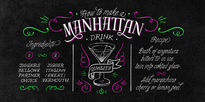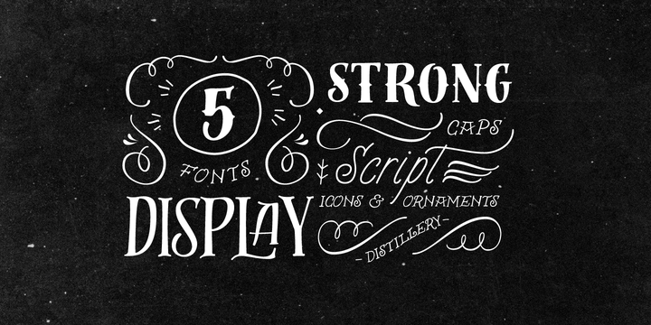 The Distillery Set is a collection of 5 fonts: Display, Strong, Script, Caps, and Icons. The fonts’ influences are in lettering from different eras and styles. They reflect forms from the Arts & Crafts movement, the Roman majuscules, artistic printing, traditional tattoo lettering, sing painting and showcards from the early XX century and some typography trends started from 1970s America and being used today like chalkboard art or handmade labels in packaging. This is collection of fonts that strongly hints of the spontaneous ways of pencil on paper, the dynamic rebellion and simultaneous imperfection and elegance of DIY.