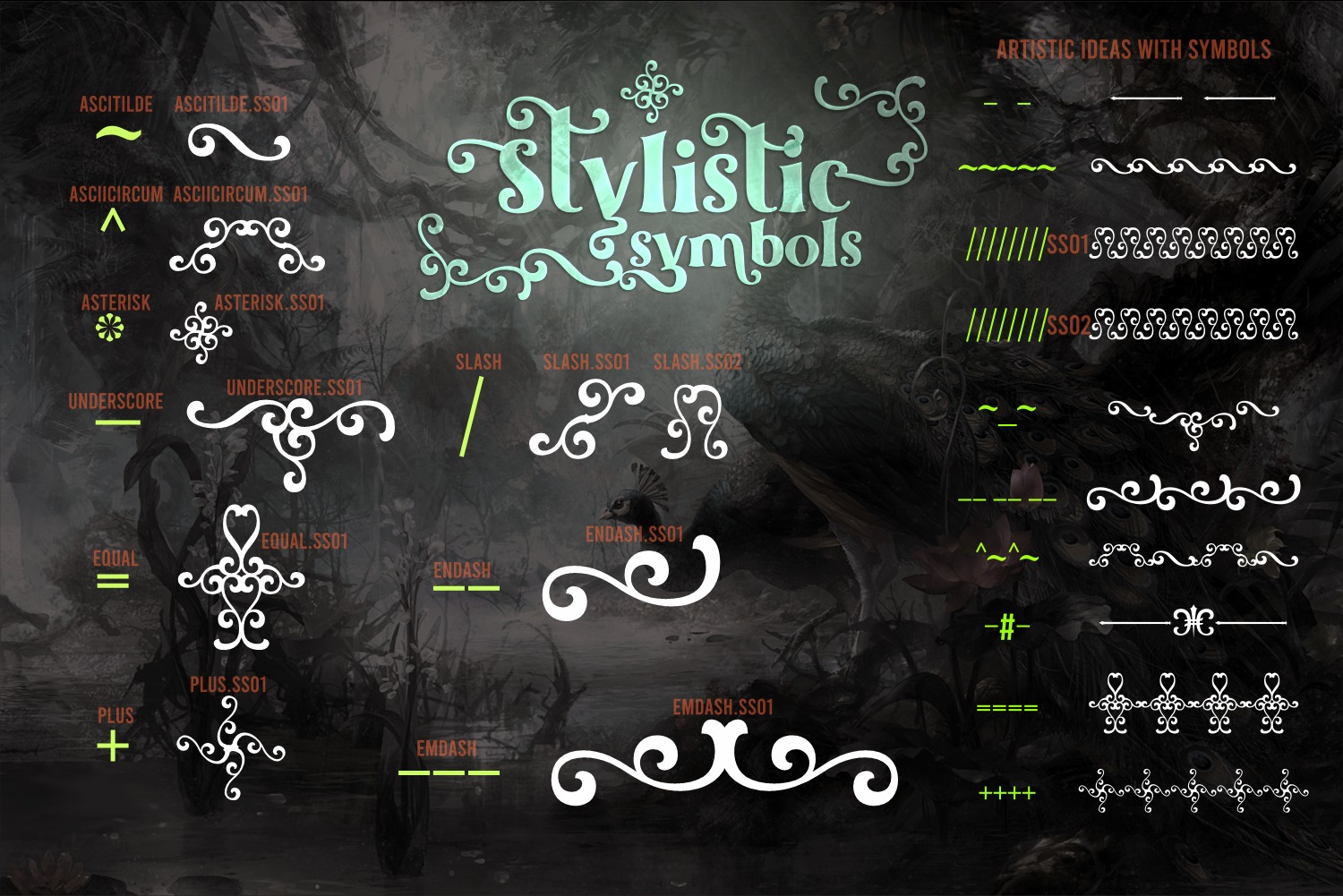 This font is PUA encoded, which means you can access all of the glyphs and swashes with ease!