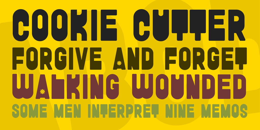 HAPPY FUNGHETTO is a typeface variant from the SUGO family of sans serif typefaces. It’s inspired by hippy culture of the seventies and comes with a double uppercase set with a set of alternate letters.