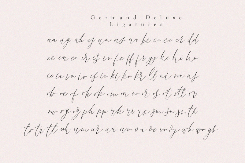 Germand Duluxe Script Font is a lavish and opulent design. Germand Deluxe’s flowing, ornate letters and intricate details create a sense of elegance and luxury that is perfect for adding a touch of sophistication to your branding or stationery. With its refined and sumptuous style, this font is sure to impress and inspire. This font is PUA encoded which means you can access all glyphs and swashes effortlessly!