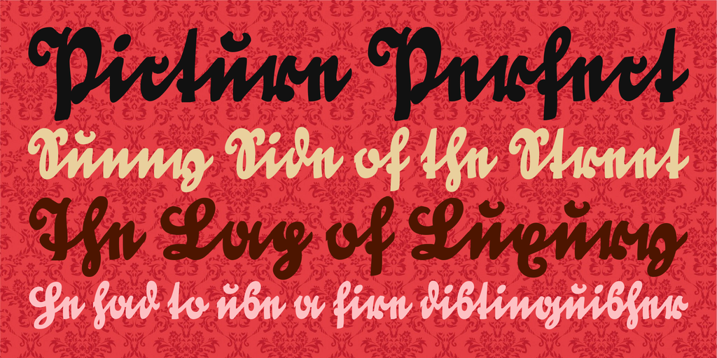 Translation of the original German description: It was the early 1930s, a wild time of upheaval that ultimately led to the dictatorship in Germany, but for many it came as a bulwark against the chaos. During this time some interesting advertising letterings were created, which were developed from the German kurrent. The lettering was quite nice, but the name was accordingly sappy for the time. So when I modeled this font, I I was looking for a more appropriate name from today’s perspective. I have received a lot of suggestions, and the winner was “Goldmarie”. Please donate if you like the font!