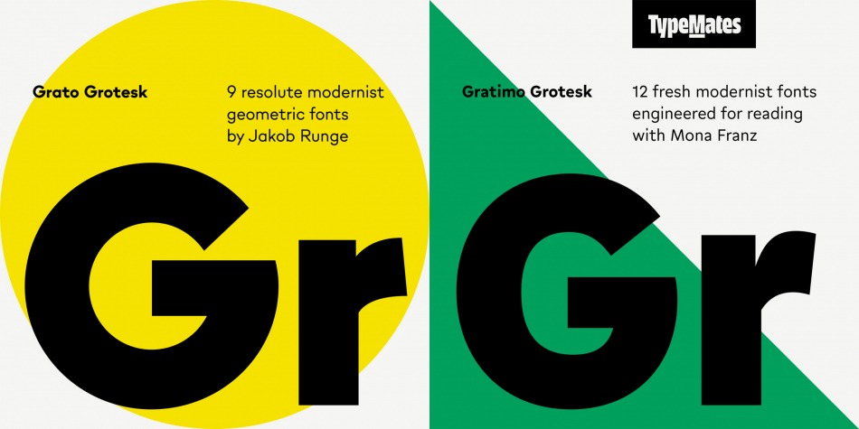 Grato Grotesk is the modernist of the Geometric Suite. A resolute typeface with flat apexes and no-nonsense angled terminals, it combines a clean, contemporary aesthetic with idiosyncrasy and warmth. Grato is shaped by pure forms, low stroke modulation and square dots that contrast with almost perfect circles. Grato Grotesk takes that core and pursues the industrial logic of early German geometric typefaces. The result is a typeface of quirks and clarity, a substantial family for identity and editorial work. With a spectrum of nine weights, from fine Hairlines to super heavy Blacks, Grato can organise complex typographic hierarchies with ease.
