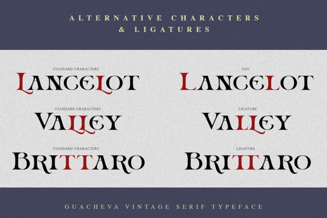 Guacheva Font is a vintage display typeface combined with rounded proportions lettersforms. It will be very suitable for art and elegant themed designs. This font is an all caps font with a height difference between its Uppercase and Lowercase. So even though it’s a little feminine, it still looks sturdy and thick, because this font has bold characteristics too.