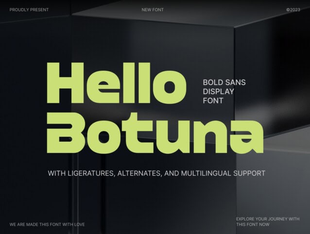 Hello Botuna Font is a modern and stylish display typeface that is meticulously crafted to add a touch of sophistication and elegance to your graphic designs. Hello Botuna is the perfect choice for projects that demand a strong visual impact, whether it’s in headlines, logos, or promotional materials.