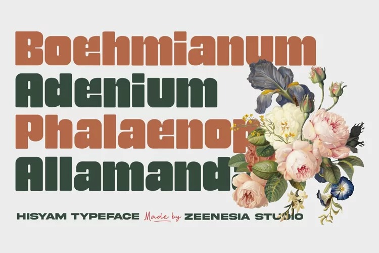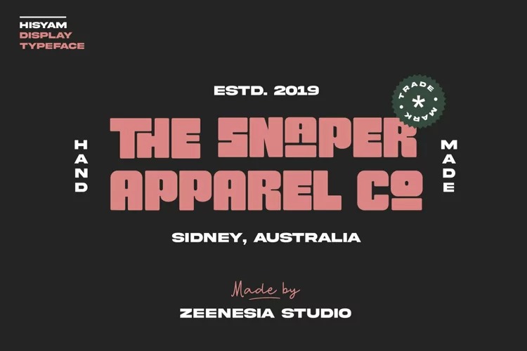 This is a bold sans font created by Zeenesia Std with strong character and soft features. This bold sans font will be the ideal choice for any cool project or great design you wish to develop. It’s a very versatile font that works great in large. Hisyam was built with open Type features, many stylistic alternate and Ligature makes your project will be awesome.