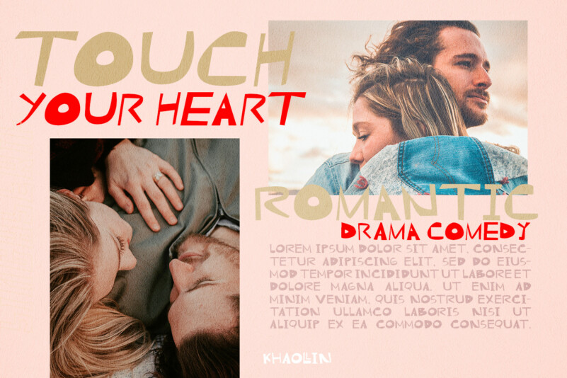 Khaollin Display Font is a playful font and will be perfect for book, title branding, product packaging, invitation, quotes, t-shirt, label, poster, logo etc.