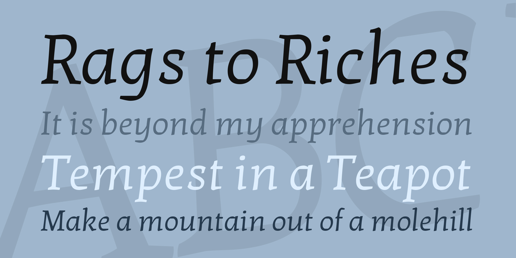 Kotta One is a new and unusual text typeface that mixes the characteristics of an italic with legibility of a roman. Kotta uses a true calligraphic construction, with a structure based on a real italic hand, not simple mechanical slanted forms.