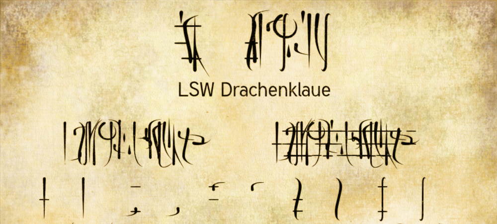 This font was made as part of a project with Lese- und Schreibwerkstatt Nalbach. In the last few weeks, we have been covering all kinds of topics related to dragons! In one of those weeks, we made some cryptographic alphabets. Alphabets like dragons would use them. So we thought it would be nice to provide anyone who is interested with a font. Hence the name: Drachenklaue, “dragon’s claw” or dragon’s writing”.