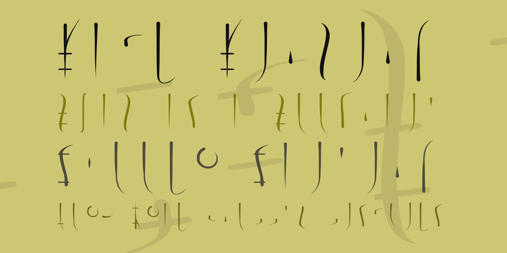 I thought, I’d try to implement a few aspects from other writing systems. The design of the glyphs might remind you of traditional Asian inking, the horizontal lines in the capital letters were an attempt at creating a ligature, like in Arabian, but I used three lines, which makes it look a bit like a musical staff.