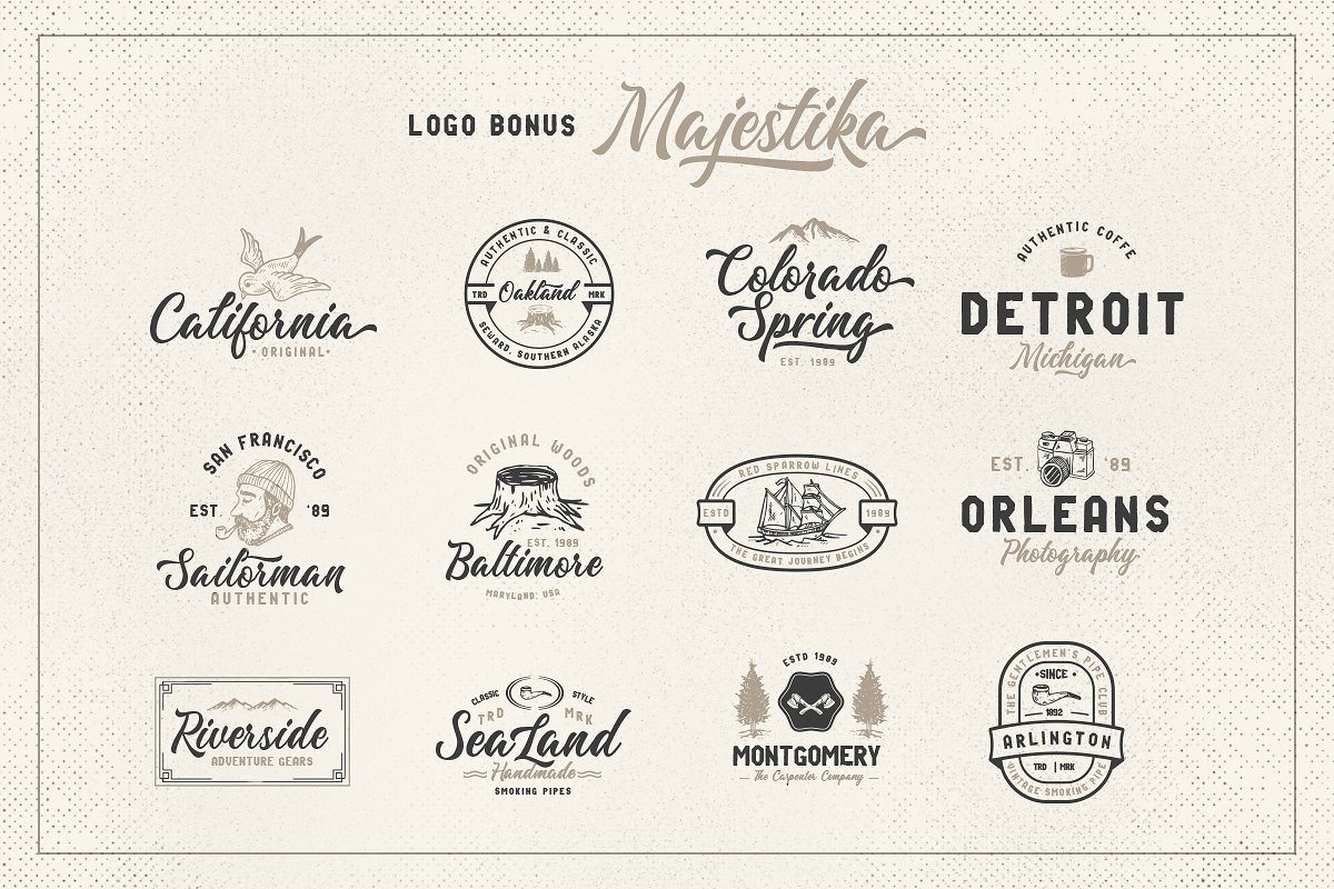A script for urban people and urban project. It will be a perfect choice for your work. Add it to your fonts collection now! Introducing Majestika Font. Majestika Script is a beautiful modern calligraphy which is suitable for you who needs a typeface for headline, logotype, apparel, invitation, branding, packaging, advertising etc. This typeface is comes in uppercase, lowercase, punctuations, symbols & numerals, stylistic set alternate, ligatures, etc.