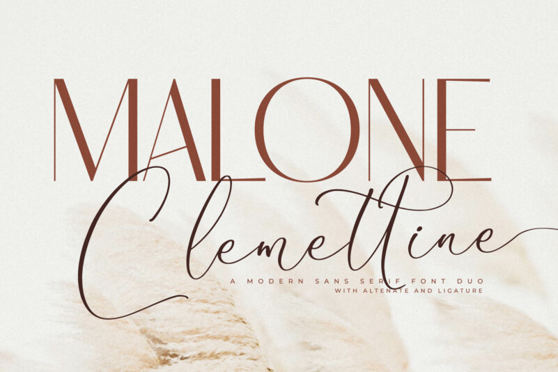 Malone Clemettine Font is a serif and script typeface that has own unique style & modern look. This typeface is perfect for an elegant & luxury logo, book or movie title design, fashion brand, magazine, clothes, lettering, quotes, and so much more.