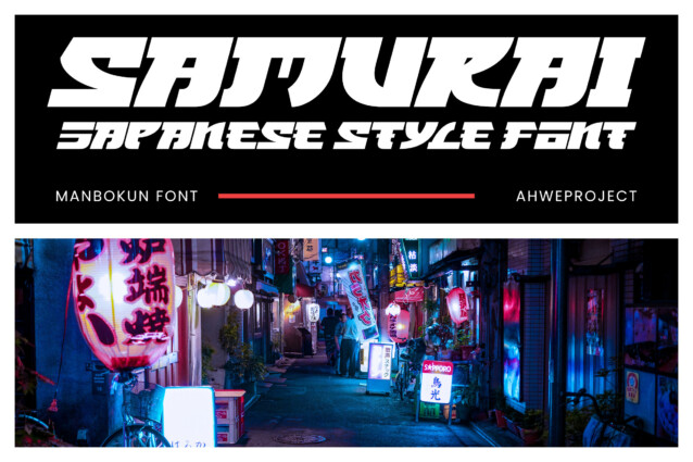 Manbokun Font – a typeface that has a unique letterform inspired by Japanese kanji typography. Suitable for headlines, titles, logos, logotypes, posters, brochures, and more!