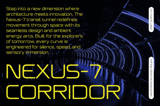 Megatrans Rounded Rough Font is a modern sans serif font that fuses futuristic geometry with rounded forms, creating a sleek yet approachable aesthetic. Its clean lines and structured layout reflect advanced design thinking, while the softened curves introduce warmth and accessibility.