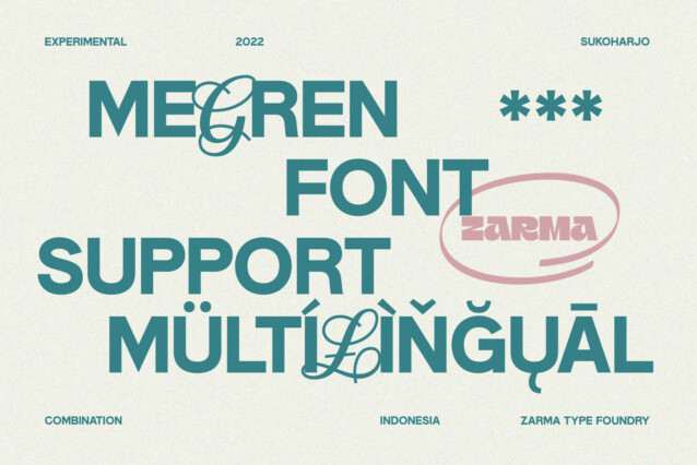 Megren Typeface – An experimental display typeface combining a simple and clean sans serif typeface with an elegant copperplate script typeface. Consists of 1 font file with copperplate script typeface on the uppercase and sans serif on the lowercase. The combination of different typefaces looks modern and fashionable but also gives a nostalgic retro vibes at the same time.