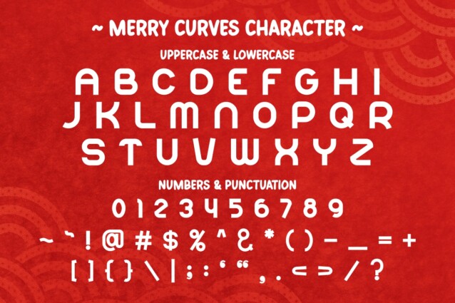Merry Curves Font is a captivating display font designed to infuse the spirit of Christmas into your creative projects. This unique typeface features delightful and whimsical curves, adding a touch of holiday cheer to your designs.