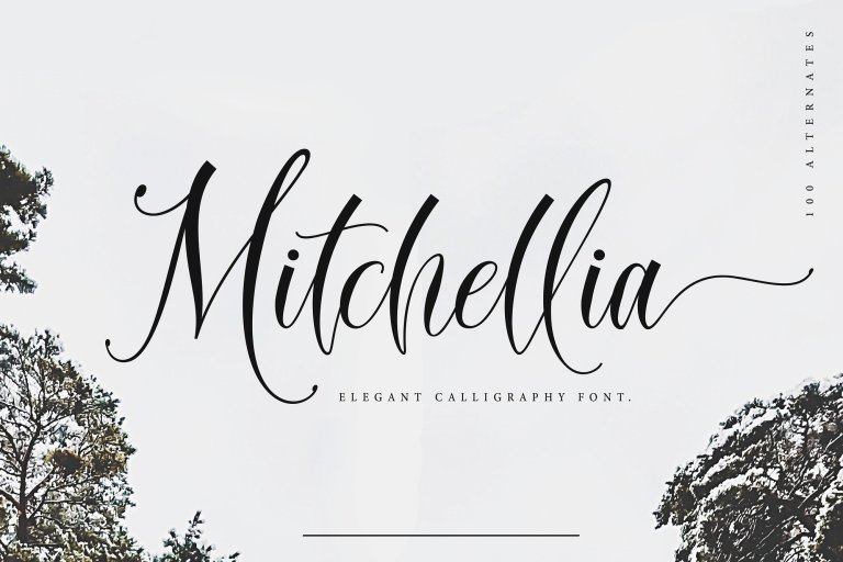 Mitchellia – is a elegant calligraphy font created by sizimon. Mitchellia – designed to convey elegance and style. It is slender, feminine and friendly. Mitchellia is perfect for fashion, e-commerce brands, trend blogs, or any business that wants to appear classy and chic.
