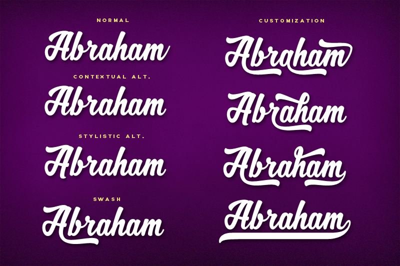 This demo version only supports ligatures and contextual alternates features. Get the commercial licenses with the full font with extra swashes alternates, stylistic alternates and stylistic set here: www.revolge.com/product/zhafira/