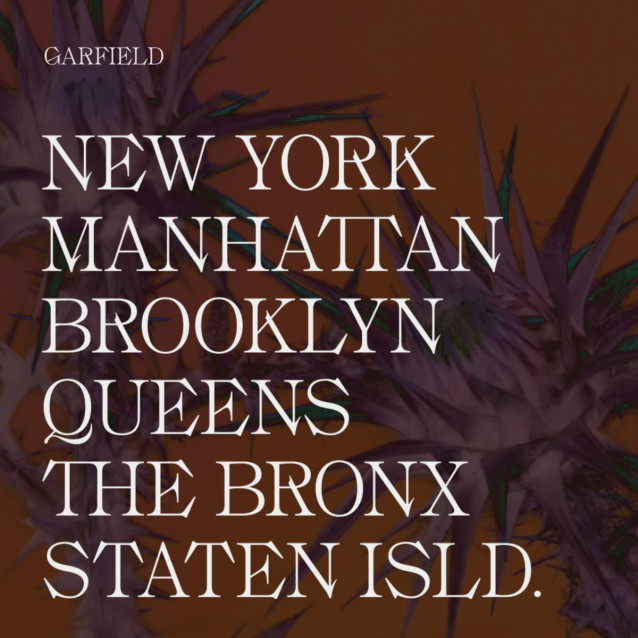 MN™ Garfield is a revival font. Source: Garfield Series manufactured by the Standard Type Foundry Inland Type Foundry St. Louis, Mo., U.S.A.