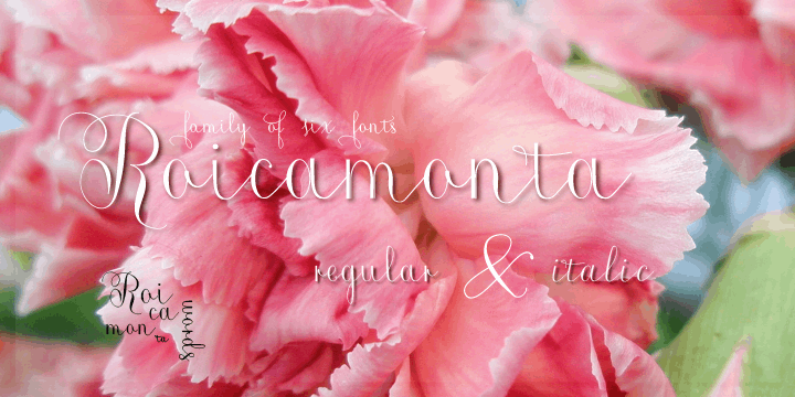 Roicamonta font looks very feminine and delicate. Perfect fit for invitations, greeting cards and other printing where soft and elegant writitng is required.