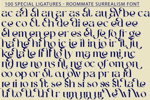 Roommate Surrealism was built with OpenType features and includes 100 ligatures, alternate, numbers, punctuation, and it also supports other languages.