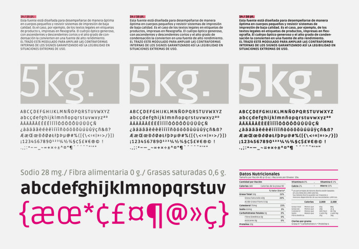 Ruda is a sans serif typeface originally developed for a specific context of use, product labels. Designed by Mariela Monsalve and Angelina Snchez, Ruda features a very large x-height, low cap-height and open forms.