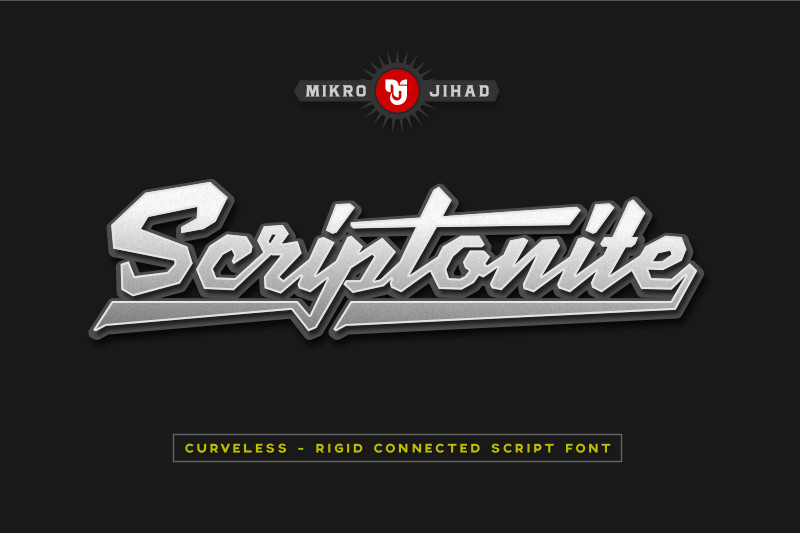 Introducing Scriptonite: a rigid, curveless connected script font inspired from the “S” Superman logo. Very strong, masculine and unique typeface for your next design projects.