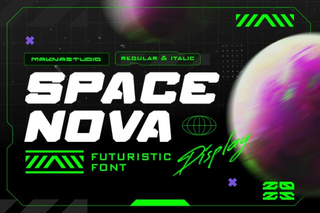 Space Nova Font is A sleek and futuristic font designed for modern projects, SPACE NOVA combines sharp edges and clean lines to bring a cosmic and high-tech aesthetic to your designs. Perfect for sci-fi themes, tech branding, and visionary concepts.