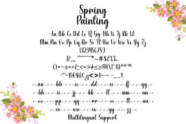 Spring Painting Font is a stylish and incredibly elegant handwritten font. It looks stunning on wedding invitations, thank you cards, quotes, greeting cards, logos, business cards, and every other design which needs a handwritten touch.This font is PUA encoded which means you can access all of the glyphs and alternates with ease!