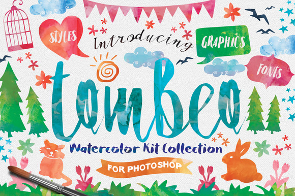 Tombeo Watercolor Kit Collection is a huge collection of font, vector element, and photoshop style. All of the items are specially made for this kit, so it’s really special collection and it has special price too 🙂 So, what you will get in this kit, let’s check below :