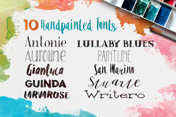 - 10 handpainted fonts (OTF and TTF)