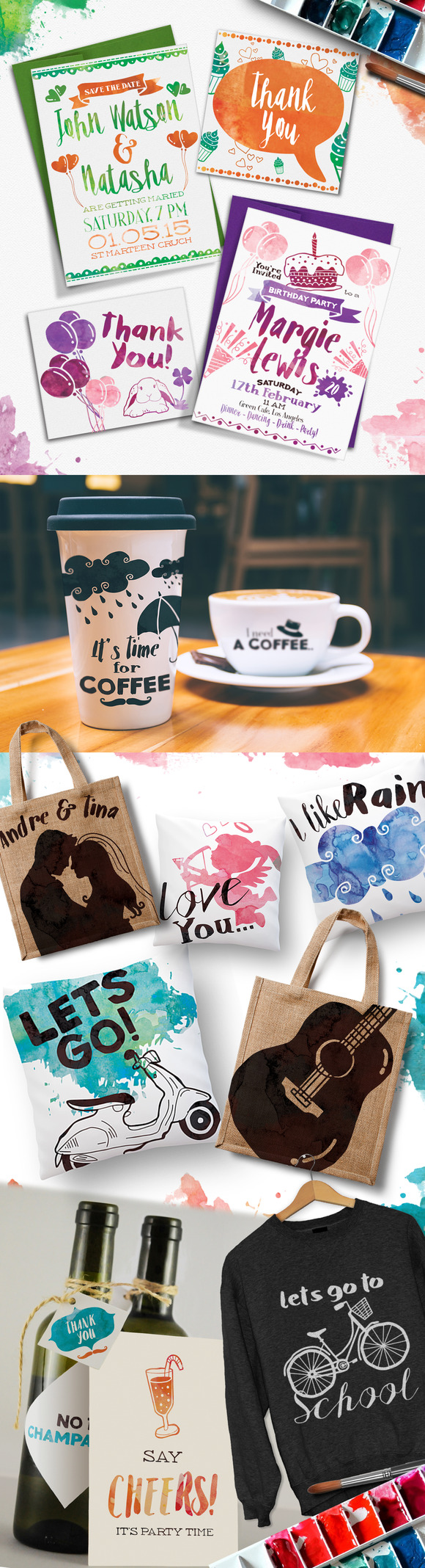 Very good for use in wedding invitations, pillows, t-shirts, birthday cards, business cards, posters, banners, and other media needs. You can easily create your design, select the shape, and then coloring with watercolor style! If you have any questions, please contact me here or my email : [email protected]