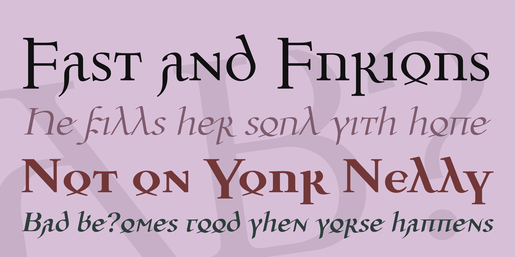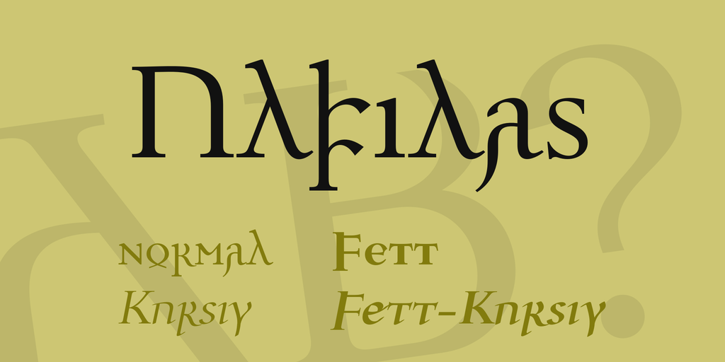 Ulfilas (after Bishop Wulfila, the creator of the Gothic alphabet) is the most extensive of my Gothic fonts. There are four typefaces: standard, bold, italic and bold-italic. To allow writing in programs that don’t support the high Gothic Unicode range (as for example MS Word), the Gothic characters are mapped to the Latin range as well.
