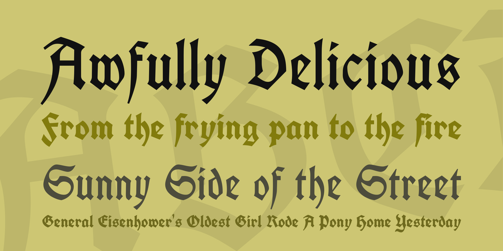 UnifrakturCook has first been published in 2010 at UnifrakturCook. It has been edited with FontForge, the libre outline font editor. OpenType features have been added with FontForge directly. AAT features have been added with ftxenhancer of the Apple Font Tools. Graphite has been added with the Graphite Compiler. For more information about AAT and Graphite, you may want to check out the Free Tengwar Font Project: Adding Graphite and AAT to a font.