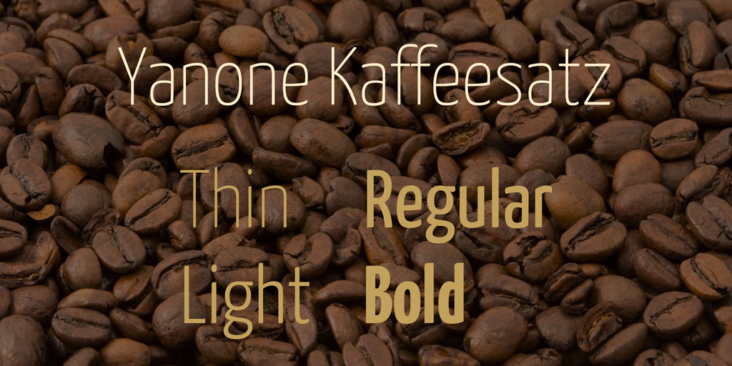 Yanone Kaffeesatz was first published in 2004 and is Yanone’s first ever finished typeface. Its Bold is reminiscent of 1920s coffee house typography, while the rather thin fonts bridge the gap to present times. Lacking self confidence and knowledge about the type scene Yanone decided to publish the family for free under a Creative Commons License. A decision that should turn out one of the best he ever made. It has been downloaded over 100,000 times to date, and you can witness Kaffeesatz use on German fresh-water gyms, Dubai mall promos and New Zealand McDonald’s ads. And of course on coffee and foodstuff packaging and cafe design around the globe. In 2009 he reworked much of the typeface and it got published in FontShop’s FontFont Library under the new name FF Kava. You can read more about it in an extensive article by Yves Peters on the FontFeed.